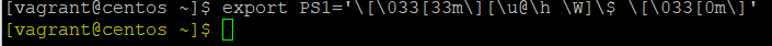 명령어 : export PS1='\[\033[33m\][\u@\h \W]\$ \[\033[0m\]'