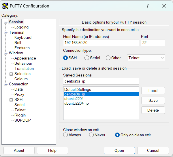putty에서 접속 확인
