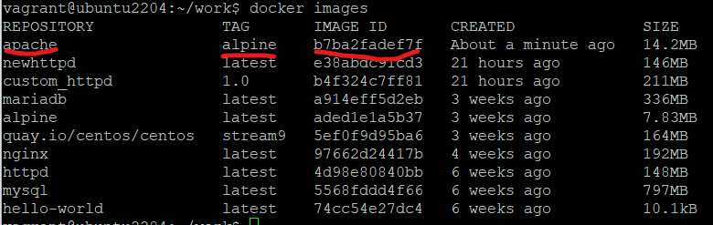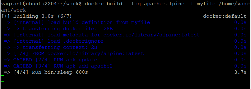 vagrant@ubuntu2204:~/work$ docker build --tag apache:alpine -f myfile /home/vagrant/work