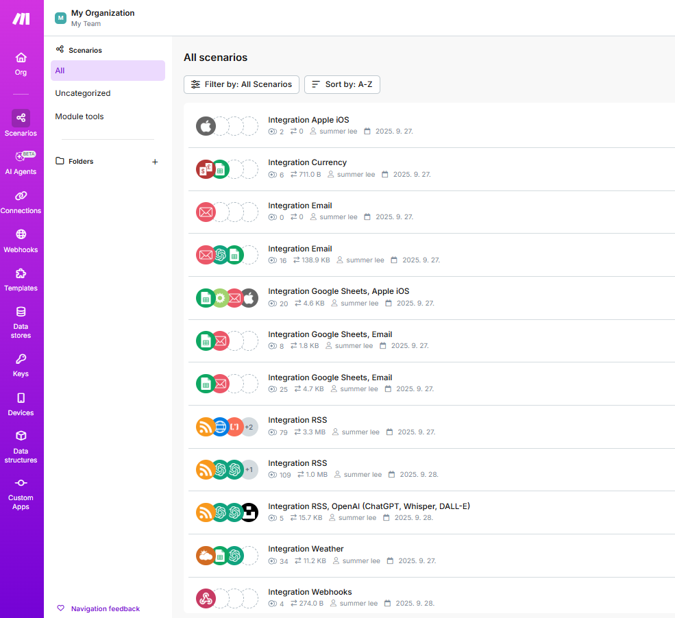 강의 시간에 만들었던 make 시나리오들 입니다.