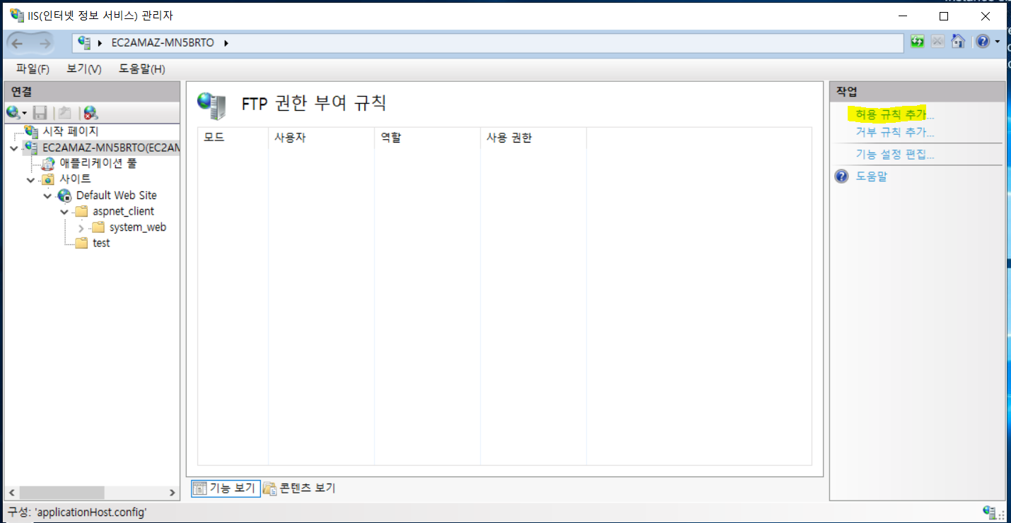 1) 제어판> 관리도구> 인터넷 정보 서비스(IIS) 관리> 사이트 > 해당 FTP 사이트> FTP 권한 부여 규칙 선택