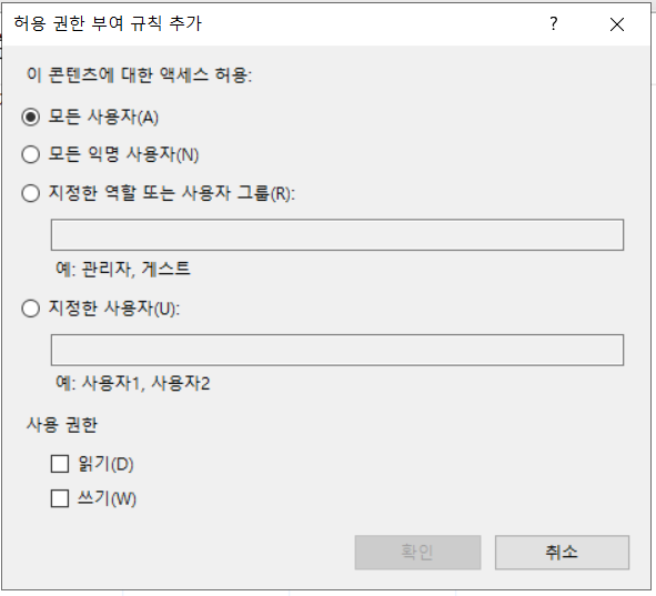 1) 허용 권한 부여 규칙에서 [지정한 사용자] 지정해 주어야합니다.