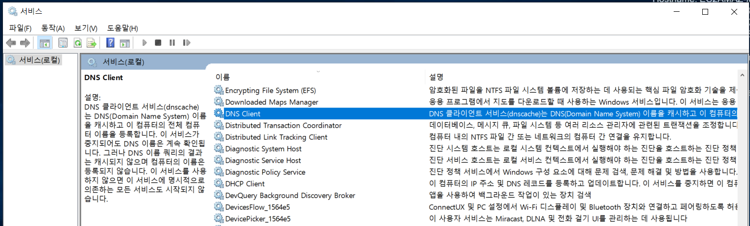 2) 시작> 실행> SERVICES.MSC> DNS 서버가 있는지 확인해보겠습니다.