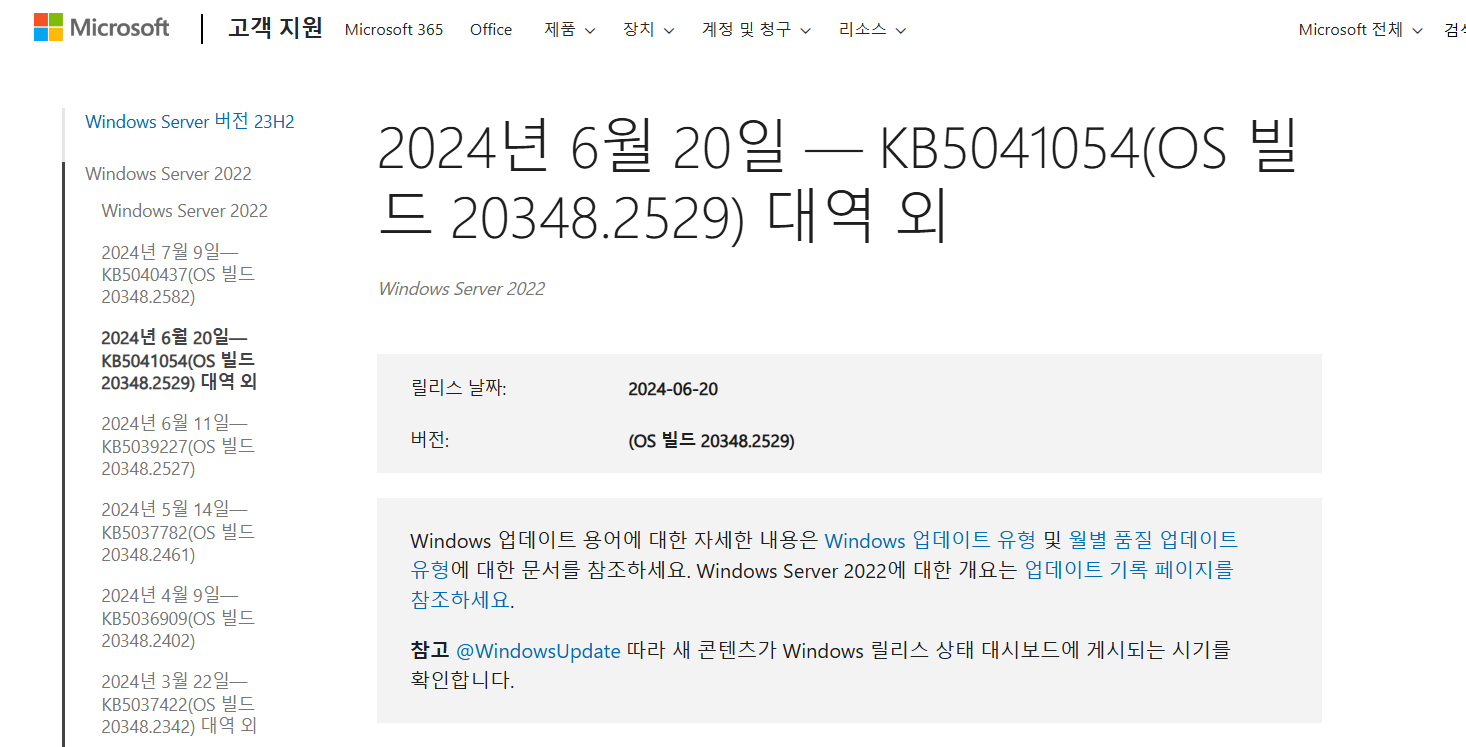 2024년 6월 20일 — KB5041054(OS 빌드 20348.2529) 대역 외 - Microsoft 지원