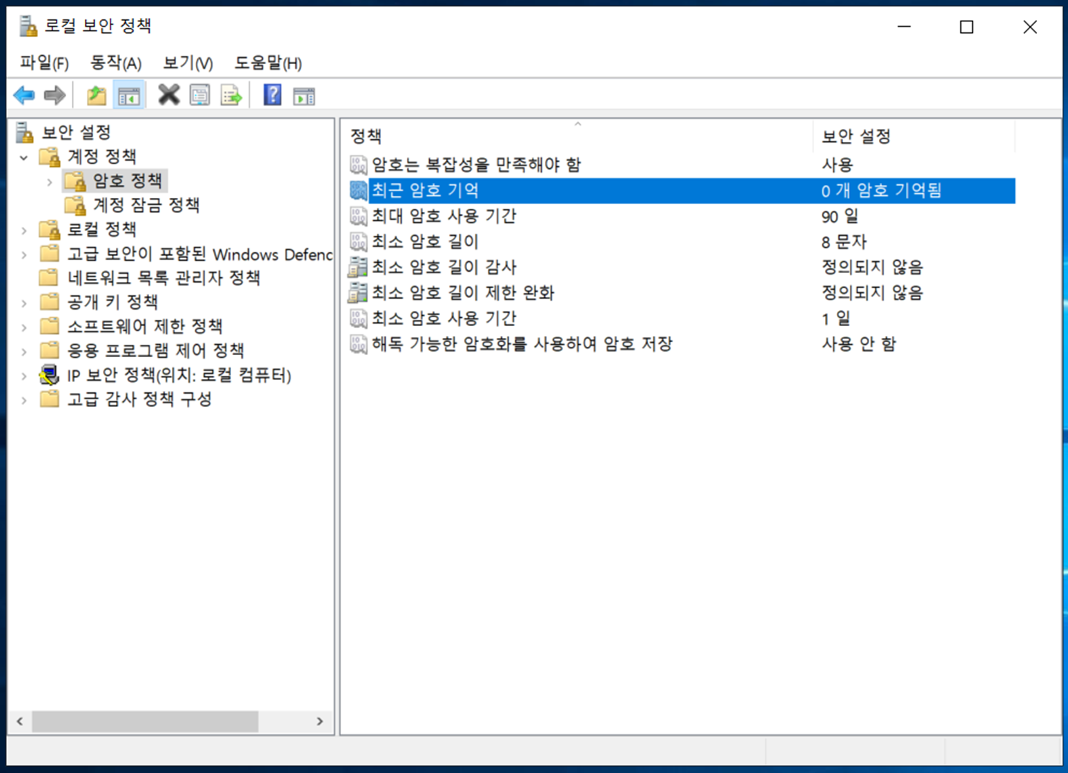 조치해보겠습니다. 최근암호기억을 더블클릭하면 아래와 같은 창이 뜹니다.
