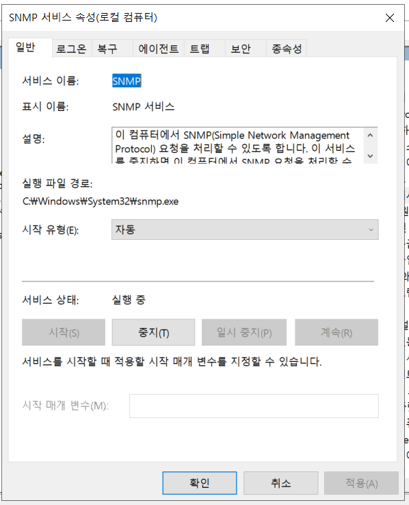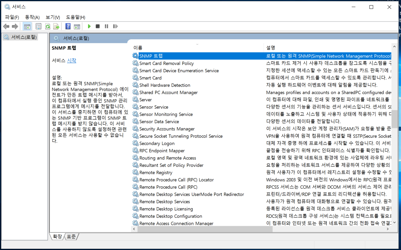 윈도우 서버 W-60 SNMP 서비스 구동 점검