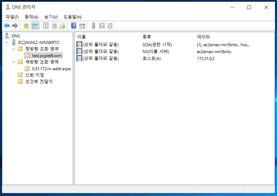 저는 DNS 서비스를 사용하지 않아서 DNSMGMT.MSC가 존재하지 않습니다.