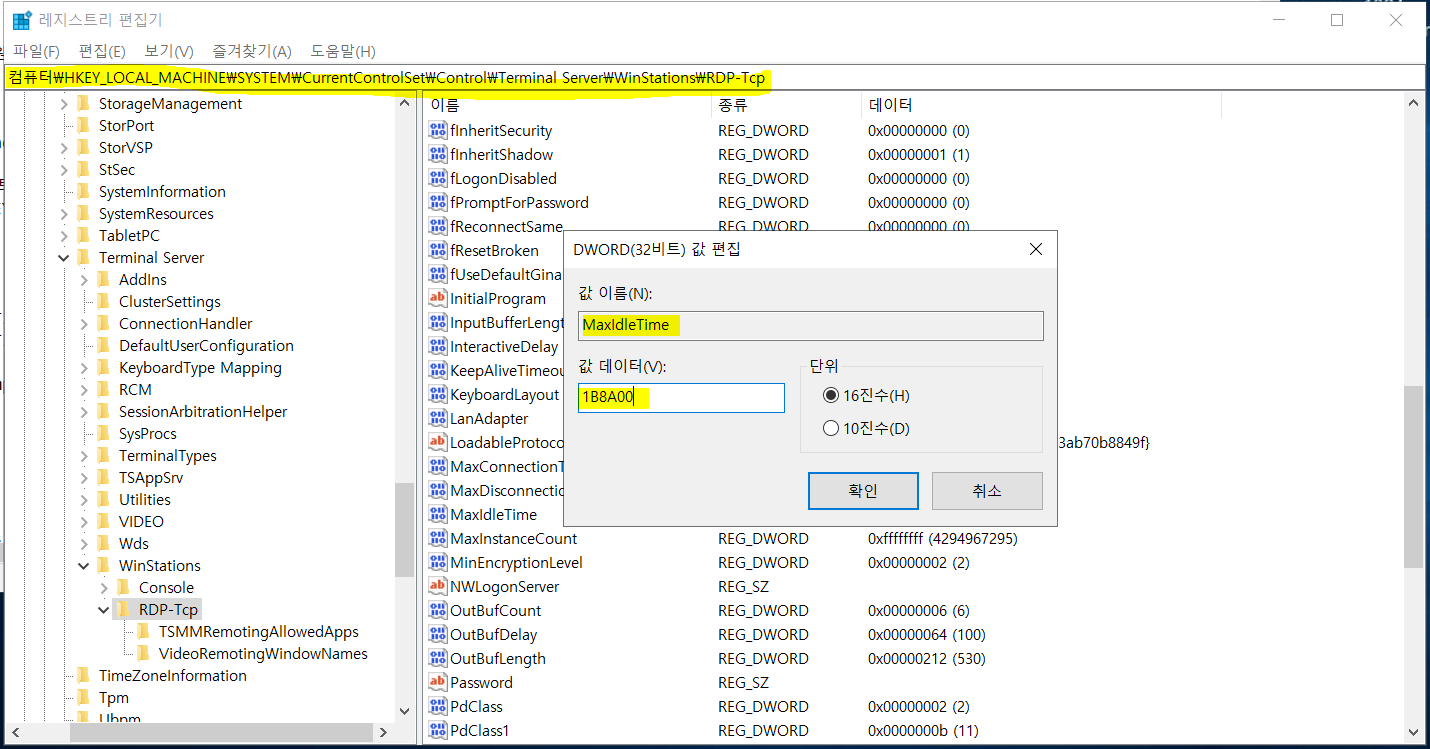 윈도우 서버 W-67 원격터미널 접속 타임아웃 설정
