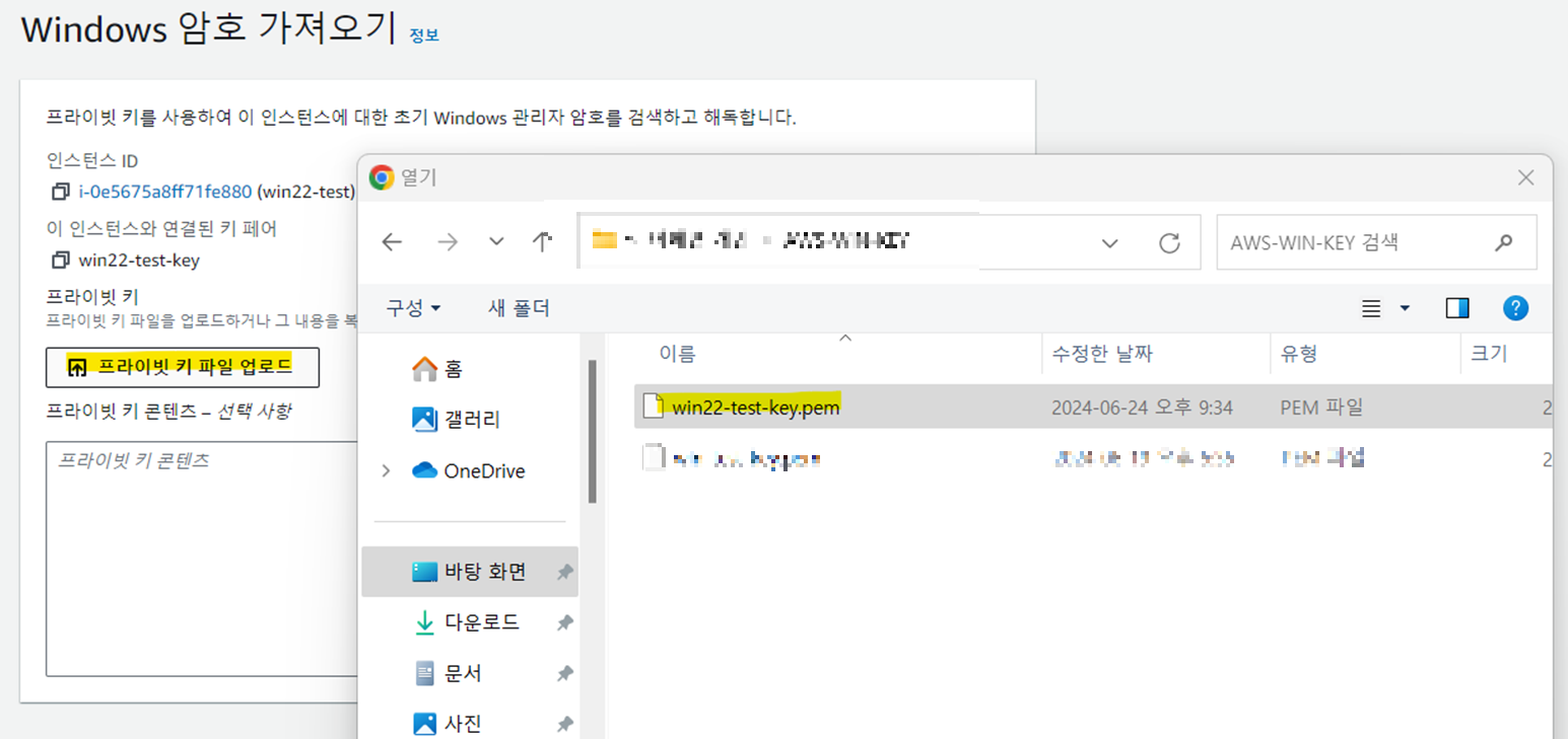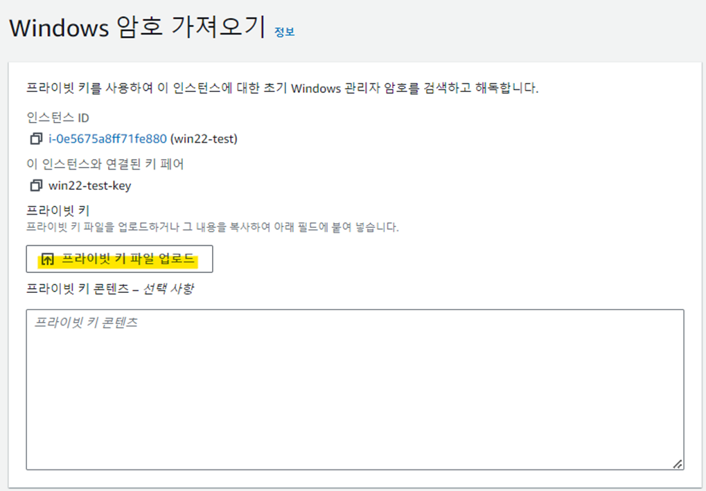 프라이빗 키 파일 업로드 클릭