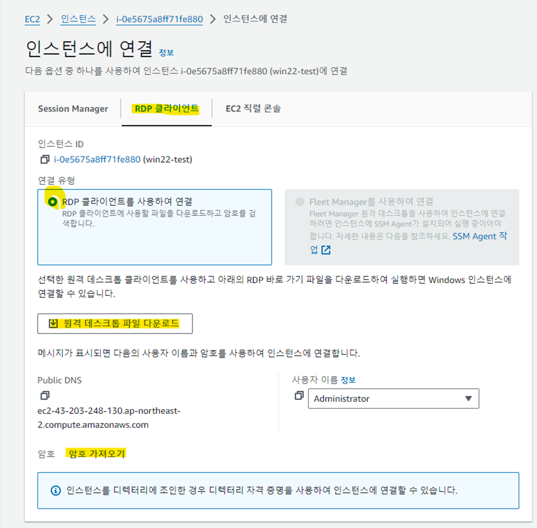 어제 AWS 윈도우서버를 구축해두었습니다. 오늘은 구축한 AWS 윈도우서버로 접속을 해보겠습니다. AWS에는 원격으로 접속을 할 수 있는 시스템이 있습니다.