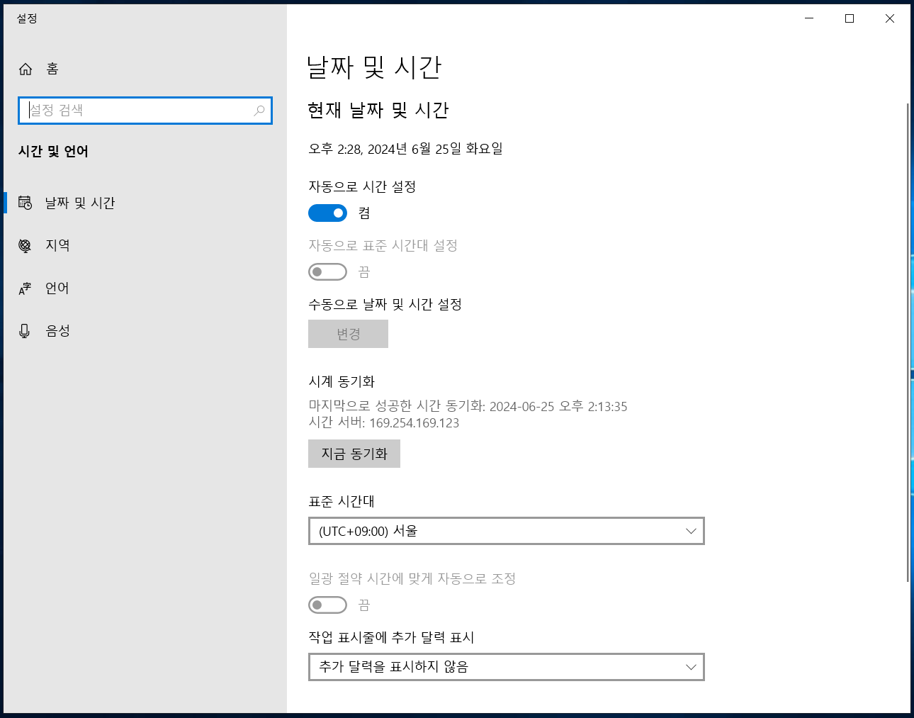 날짜 및 시간 > 서울 > 지금동기화