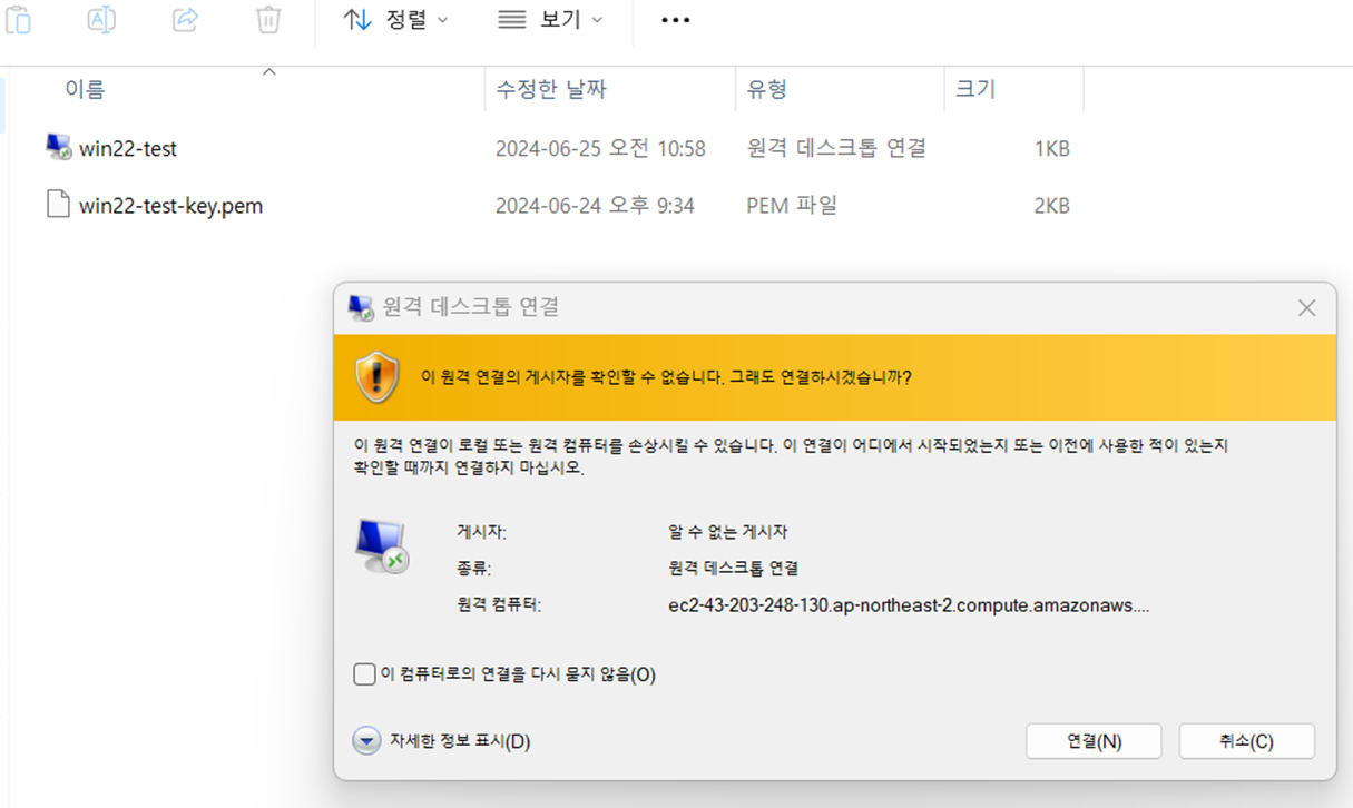 앞서 다운로드 받았던 "원격데스크톱 파일"을 통해 윈도우서버로 접속하겠습니다.