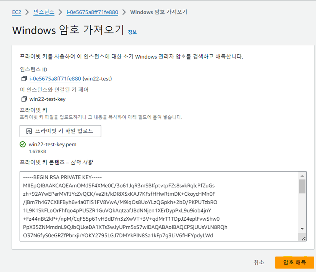 프라이빗키의 업로드가 완료되면 암호해독을 눌러줍니다.