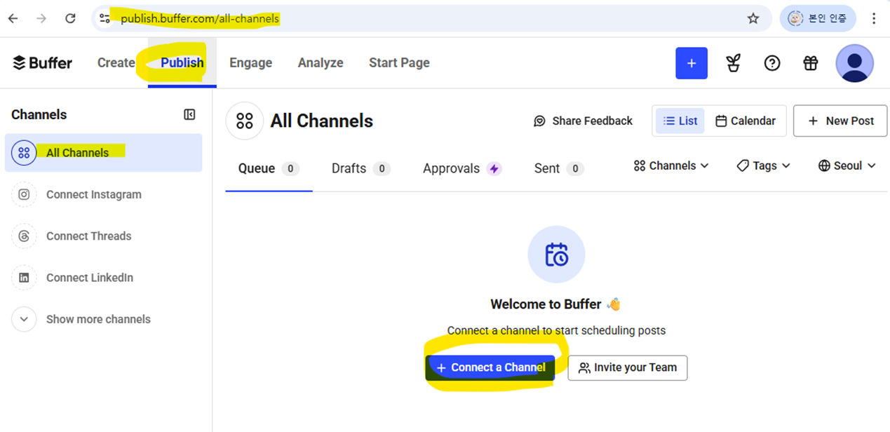 Buffer 회원가입 후 인스타그램 연동을 해보겠습니다!