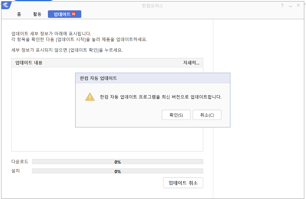 한컴의 경우.. 올초에 업데이트를 수행했었는데...