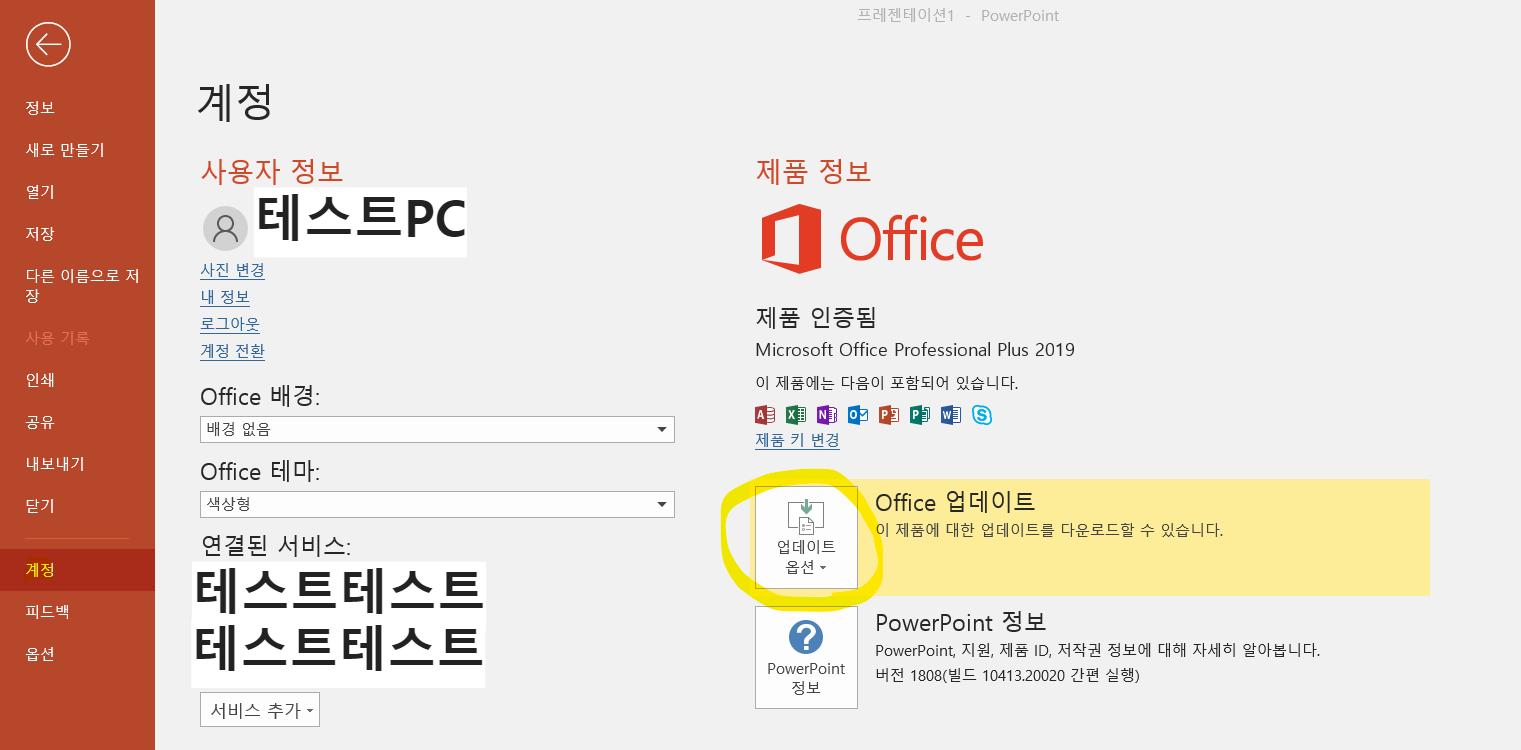 2) 계정 > 업데이트 옵션 선택하여 최신 업데이트 정보를 확인합니다.