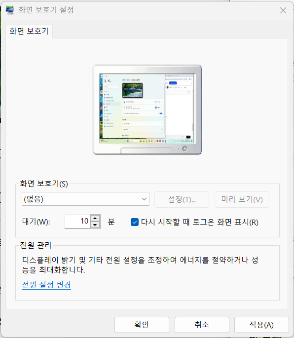 기본값으로 화면보호기 기능 설정은 되어있으나 일부 화면보호기기능조차 되지 않도록 꺼두는 경우가 있습니다.