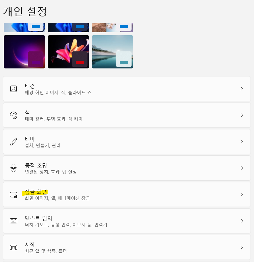 3. 화면보호 상태에서 비밀번호를 입력창 뜨도록 설정