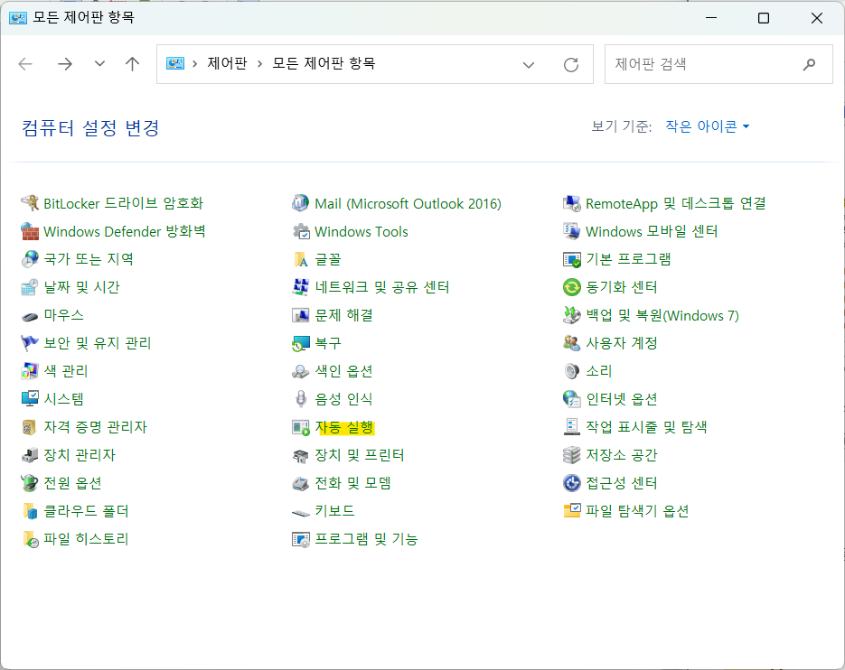1) 시작> 제어판> 자동 실행