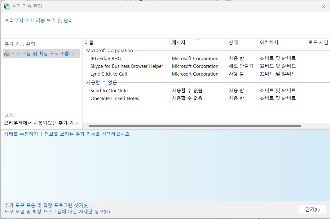 장기간 사용하지 않는 ActiveX에 대해 제거하도록 되어있습니다.