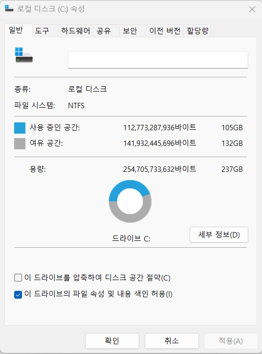 ※ NTFS, FAT32 파일 시스템 비교: FAT32에는 NTFS가 제공하는 보안 기능이 없으므로 컴퓨터에 FAT32 파티션 또는, 볼륨이 있는 경우 컴퓨터에 액세스 가능한 모든 사용자가 파일을 읽을 수 있으며 FAT32에는 크기 제한이 있음