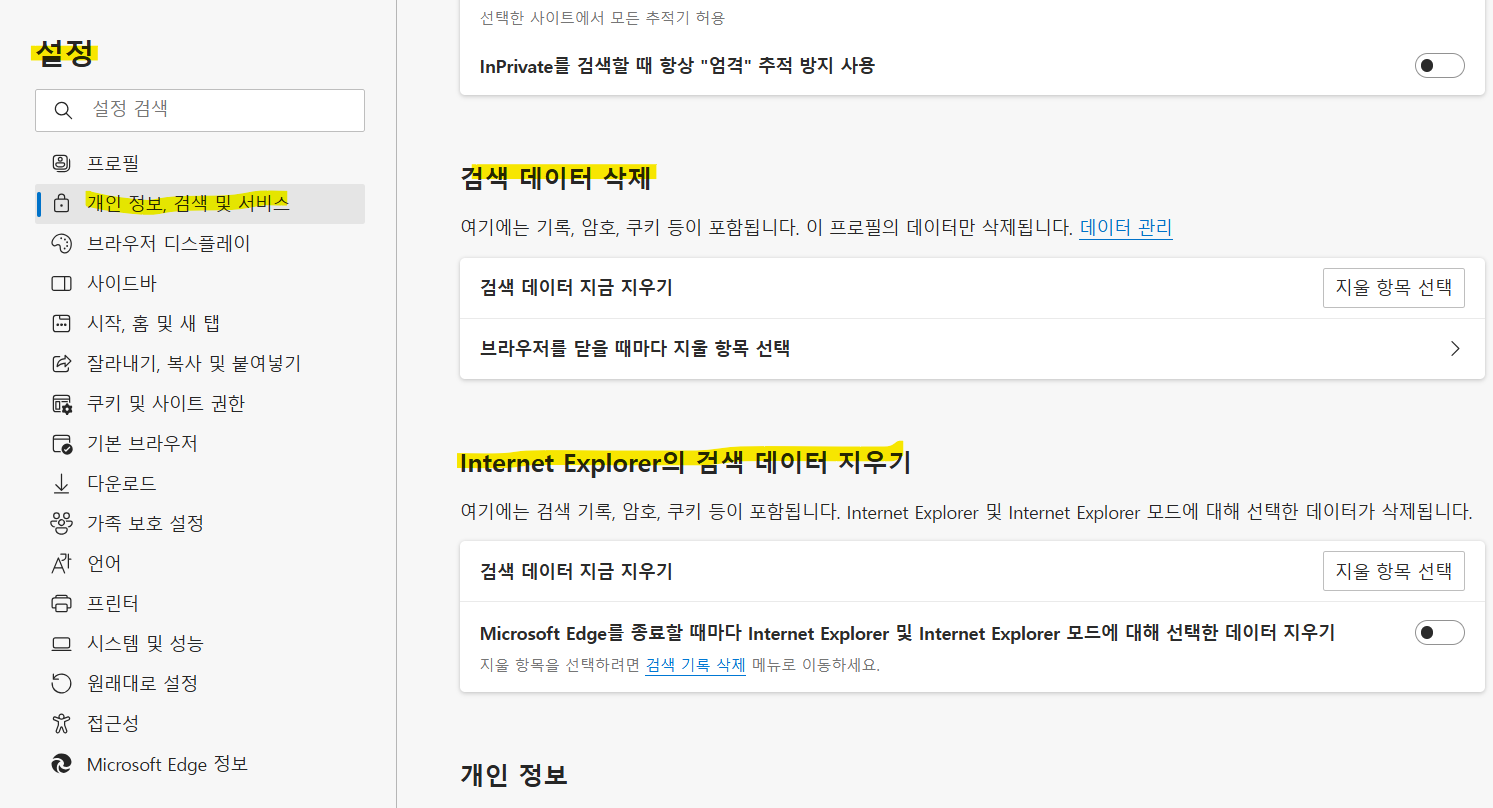 근데 문제는 이항목의 설정은 인터넷익스플로러만 해당됩니다.