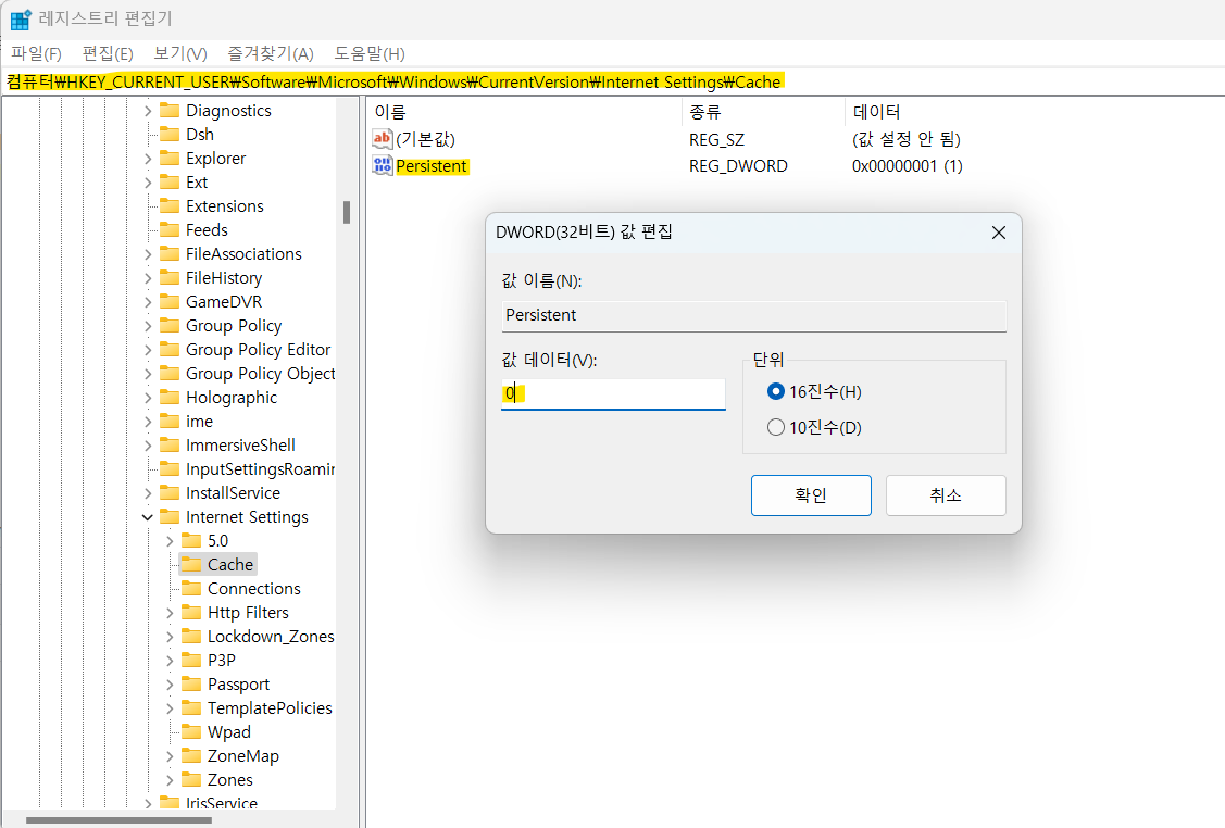 HKEY_CURRENT_USER\Software\Microsoft\Windows\CurrentVersion\Internet Settings\Cache