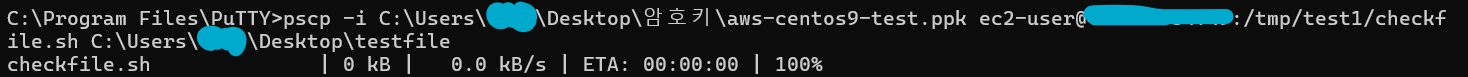 pscp -i C:\Users\Desktop\암호키\aws-centos9-test.ppk ec2-user@xx.xxx.xx.xx:/tmp/test1/checkfile.sh C:\Users\Desktop\testfile