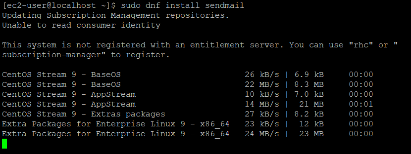 sendmail을 설치하려고 했는데 설치가 안되고 멈춤이 발생했습니다..