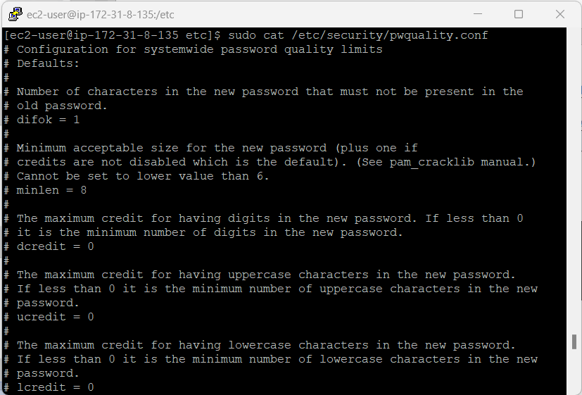minlen=8 | 최소 패스워드 길이 설정 | 최소 8자리 이상 설정 |