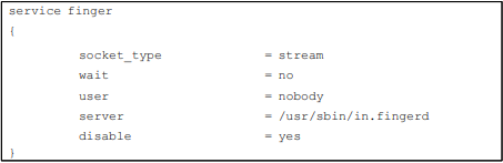 # finger stream tcp nowait bin /usr/lbin/fingered