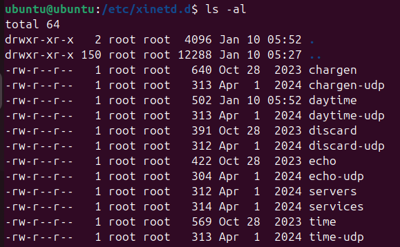 ubuntu@ubuntu:/etc/xinetd.d$ ps -ef | grep -E 'echo|discard|daytime|chargen'