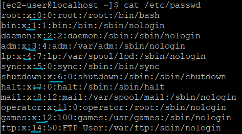 [ec2-user@localhost ~]$ cat /etc/passwd